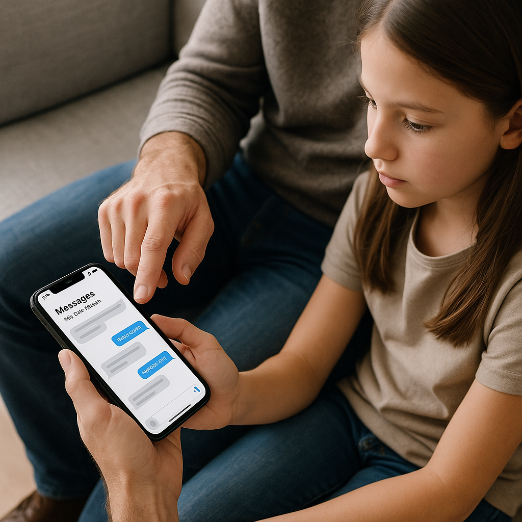 Quando você descobrir algo preocupante nas mensagens, como adolescente enviando mensagens inadequadas ou em contato com estranhos, use a informação como ponto de partida para uma conversa educacional, não como base para punição imediata. Sua resposta inicial será lembrada para sempre e determinará se seu filho confiará em você no futuro ou simplesmente se tornará mais secreto e hábil em esconder atividades.